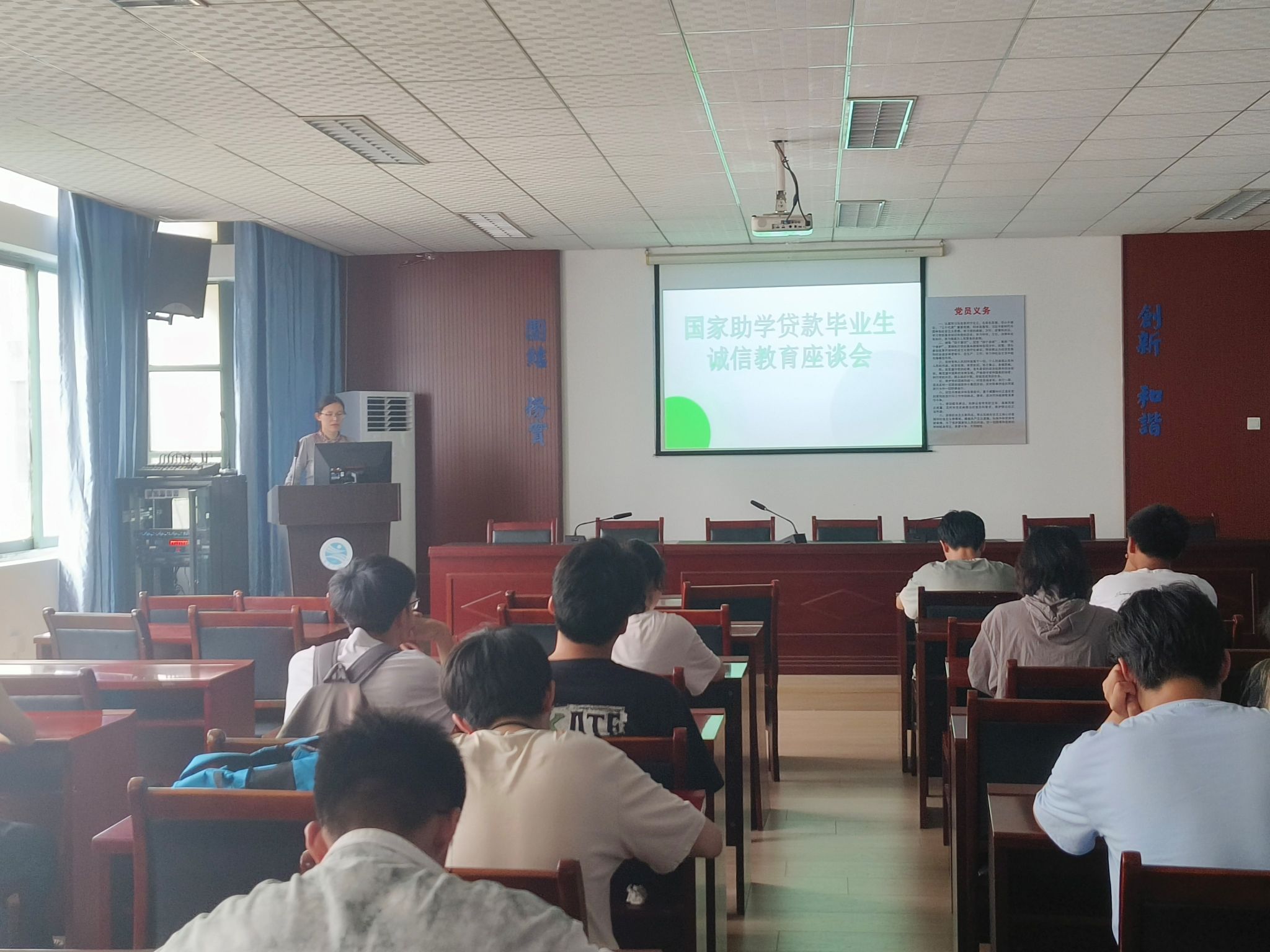 为进一步做好2025届毕业生国家助学贷款还款工作,增强学生的诚实守信意识,土木与建筑工程学院于6月6日中午在土建楼B207-1会议室召开了以“诚信还款、诚实做人”为主题的国家助学贷款毕业生诚信教育座谈会。此次会议由学院辅导员邓婕主持,2025届各班级毕业生代表参加了此次会议。