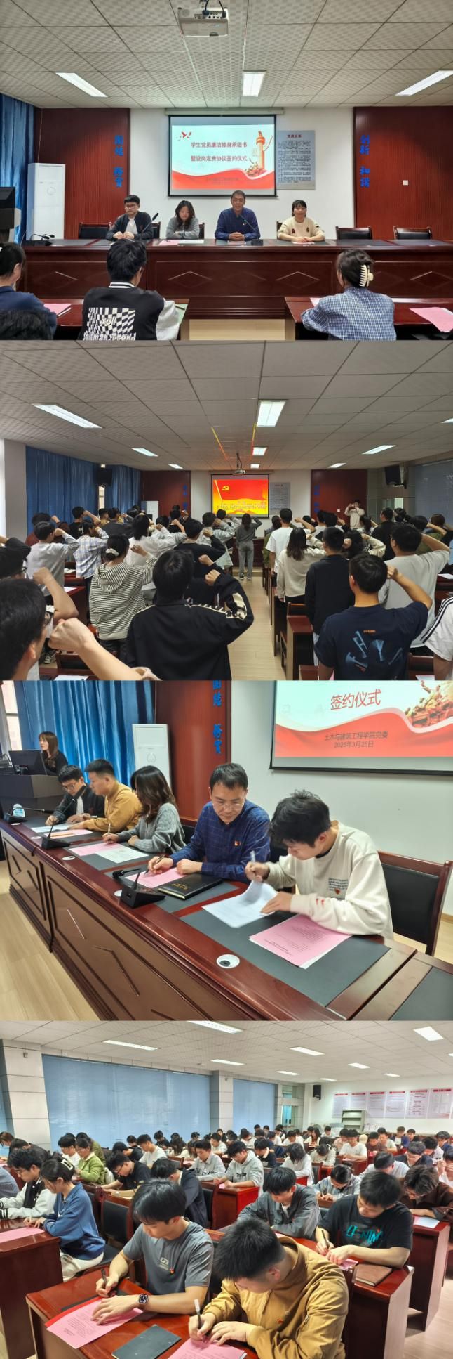 为进一步加强学生党员的党性修养,推动廉洁文化建设,充分发挥学生党员的先锋模范作用,土木与建筑工程学院于2025年3月25日开展2025年学生党员设岗定责暨廉洁修身承诺书签约仪式。学院党委副书记李甘、各学生党支部书记及全体学生党员参加。