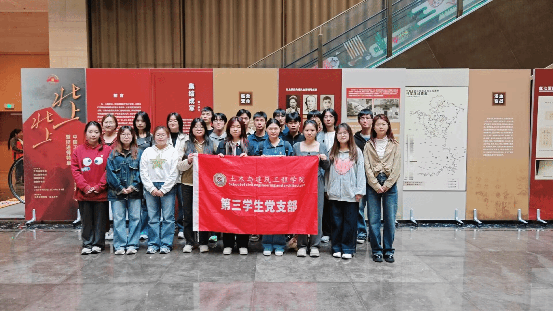 为缅怀革命先烈,传承红色基因,在中国人民抗日战争暨世界反法西斯战争胜利80周年的重要历史时刻,2025年10月26日,土木与建筑工程学院第三学生党支部组织全体师生党员,前往江西省博物馆参观“北上!北上!——中国工农红军北上抗日先遣队暨挺进师特展”,开展“感悟北上精神 汲取奋进力量”主题党日活动。