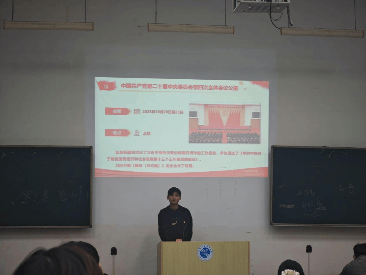此次宣讲聚焦“深入学习贯彻党的二十届四中全会精神”核心主题,采用“辅导员导学+学生党员带学”模式,通过线上线下结合的方式开展分层次、分众化“靶向式”宣讲。宣讲内容紧扣三大重点:一是核心要义解读,围绕二十届四中全会公报、“十五五”规划建议等权威材料展开讲解;二是青年使命担当,结合高等教育发展与大学生成长成才实际,阐释全会精神与学业、就业、实践的结合点;三是校园榜样引领,用身边典型案例增强宣讲的亲和力与说服力。