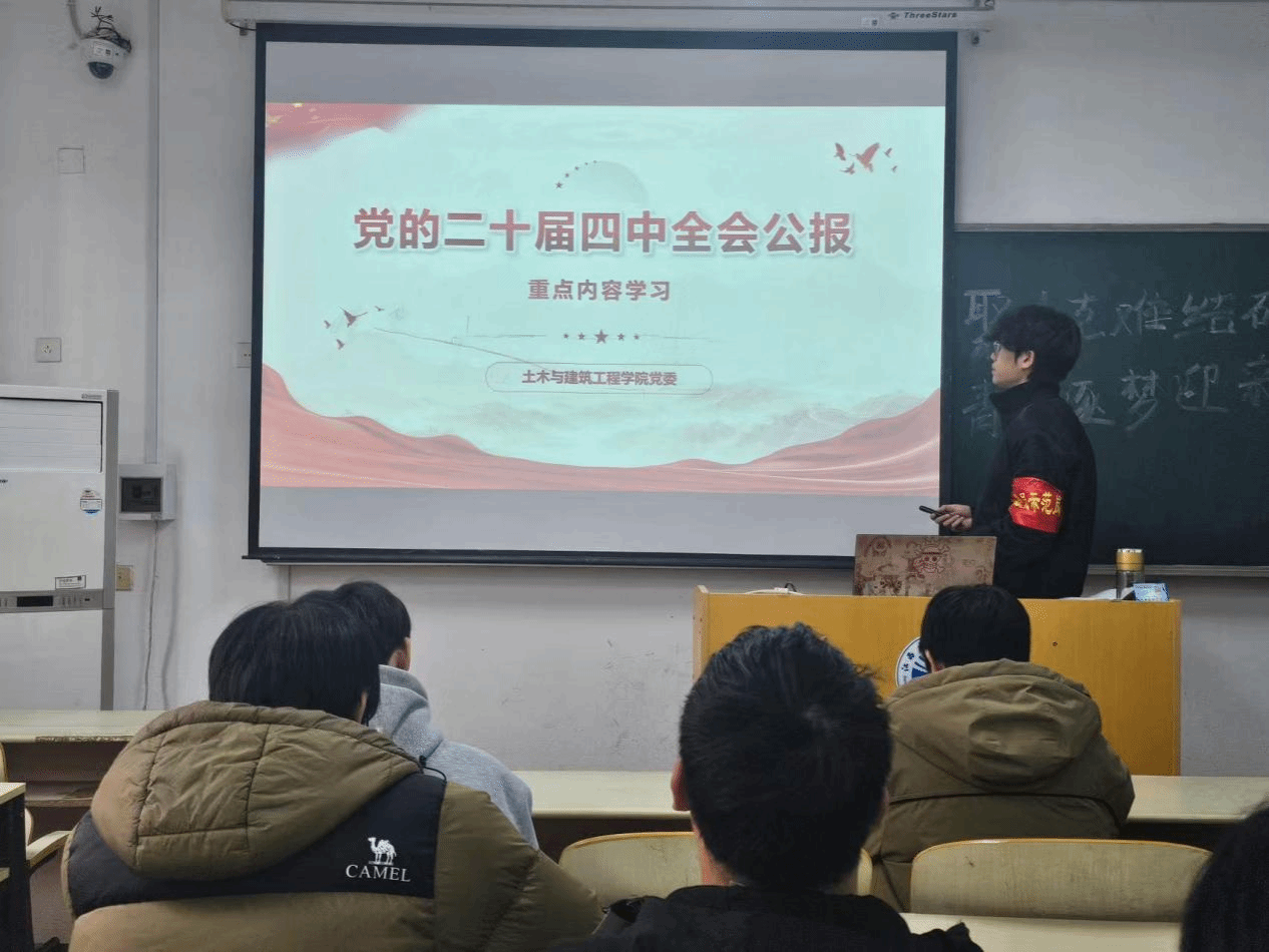 为深入学习宣传贯彻党的二十届四中全会精神,引导全校学生深刻领会全会的重大意义、精神实质与实践要求,自觉将思想与行动统一到党中央决策部署上来,推动全会精神在校园落地生根、入脑入心。12月5日-12月12日,学院党委组织辅导员、学生党员在大学生中开展学习贯彻党的二十届四中全会精神宣讲。