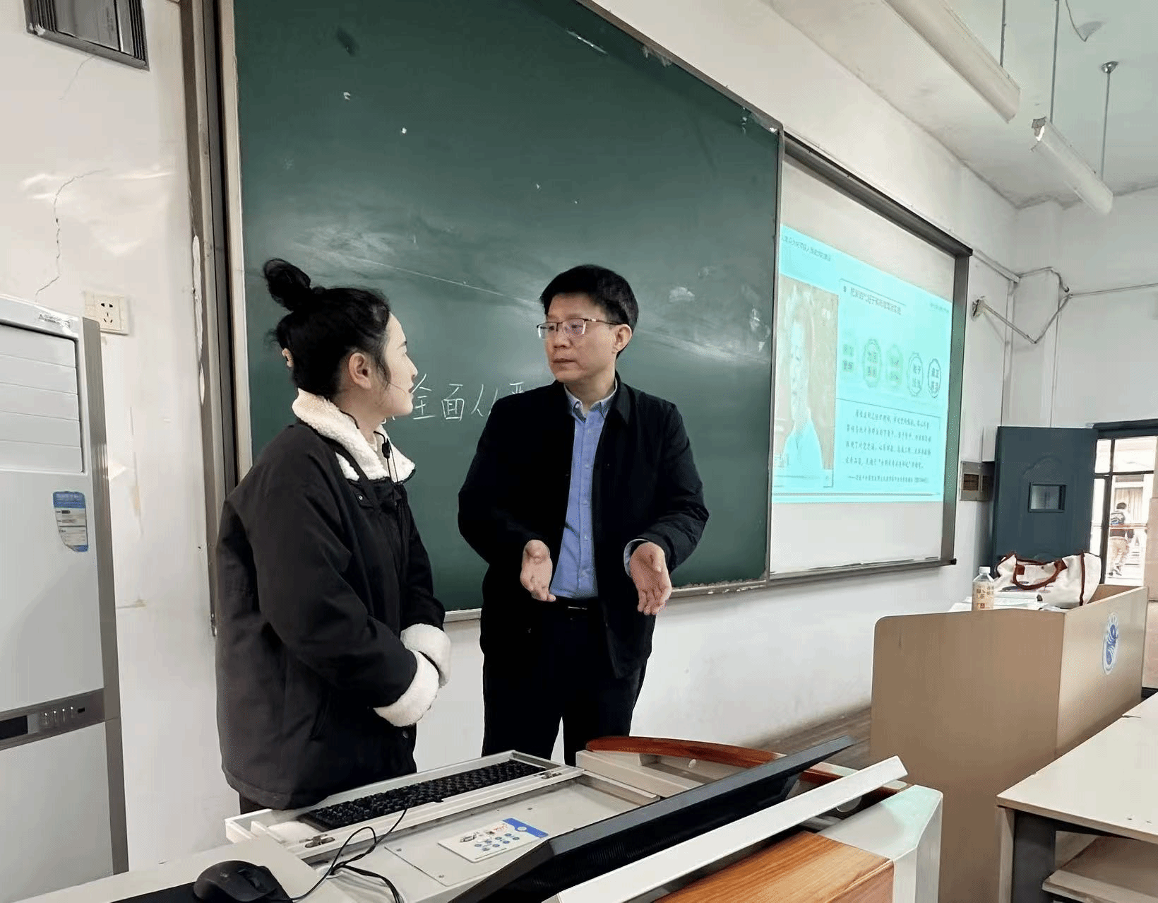 听课过程中,刘林芽认真记录授课内容、教学环节设计与师生互动等情况,细心观察教师教学风采和学生课堂风貌。课后,刘林芽与授课教师进行交流,充分肯定了三位思政教师在教学中的亮点与成效,并针对课程优化提出具体建议:要进一步增强理论的通俗性与感染力,注重结合学生思想动态和现实需求设计教学环节;注重结合学生思想动态和现实需求设计教学环节,提升课堂互动的深度与实效;善用红色文化资源和时代实践案例,让思政课既有历史厚度又有现实温度。(文/刘靓芳 图/马浩哲)