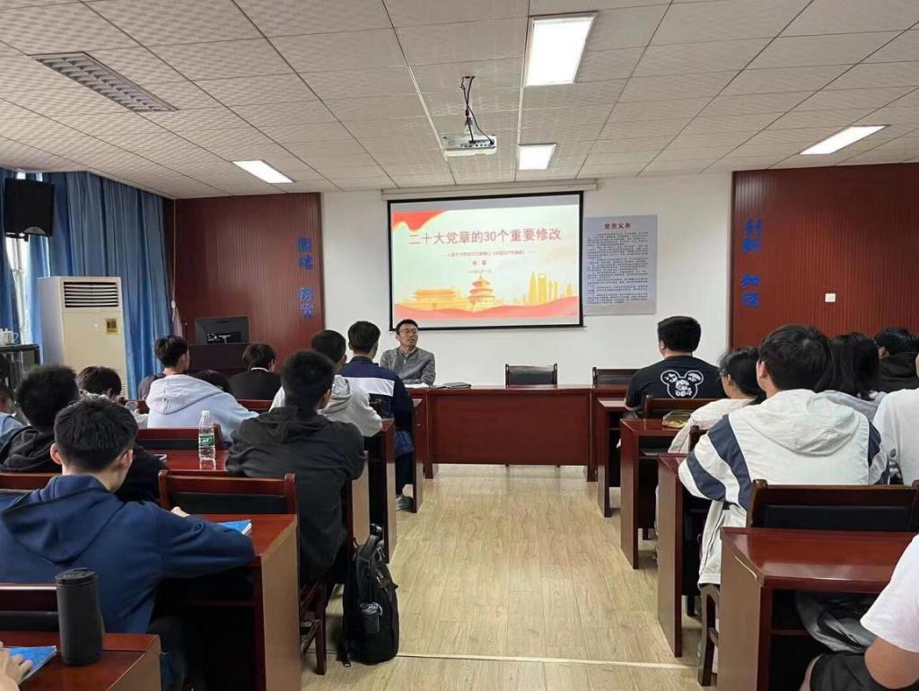 崔猛同志以《二十大党章的30个重要修改》为题,从中国共产党章程基本概述、党的二十大修改党章的重大意义、党的二十大关于党章(修正案)决议及二十大党章的30个重要修改等四个方面,向班级同学详细介绍了党的二十大对党章做出的具体修改内容。课后,同学们纷纷表示这是一堂有滋有味的入党启蒙课,在以后的学习生活中,定会把践行党章要求作为落脚点,切实做到学以致用、知行合一,争当对社会和国家有用的人才。(图/潘赵翌 文/黄奕)
