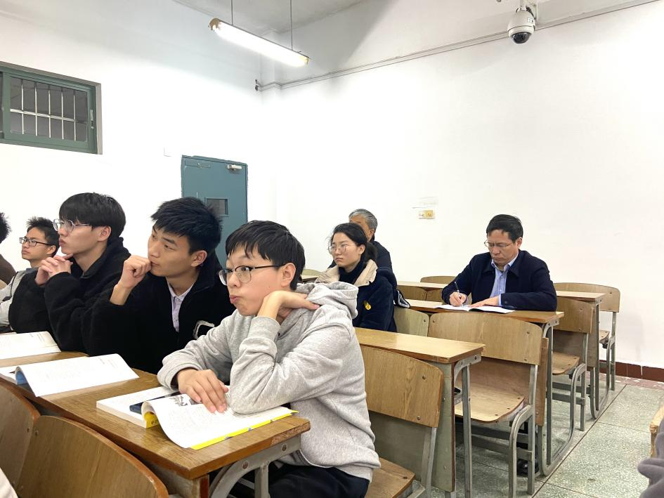 课堂讲授了“习近平新时代中国特色社会主义思想是中华文化和中国精神的时代精华”章节内容。听课过程中,汪胜前认真记录,重点关注教学方法、教学效果等情况,并于课后与黎欣就教学方式方法、案例选取等方面进行了交流,要求任课教师在授课过程中,把道理讲深、讲透,不断推进思政课改革创新,进一步筑牢大学生的信仰根基。(文图/江玮瑶)
