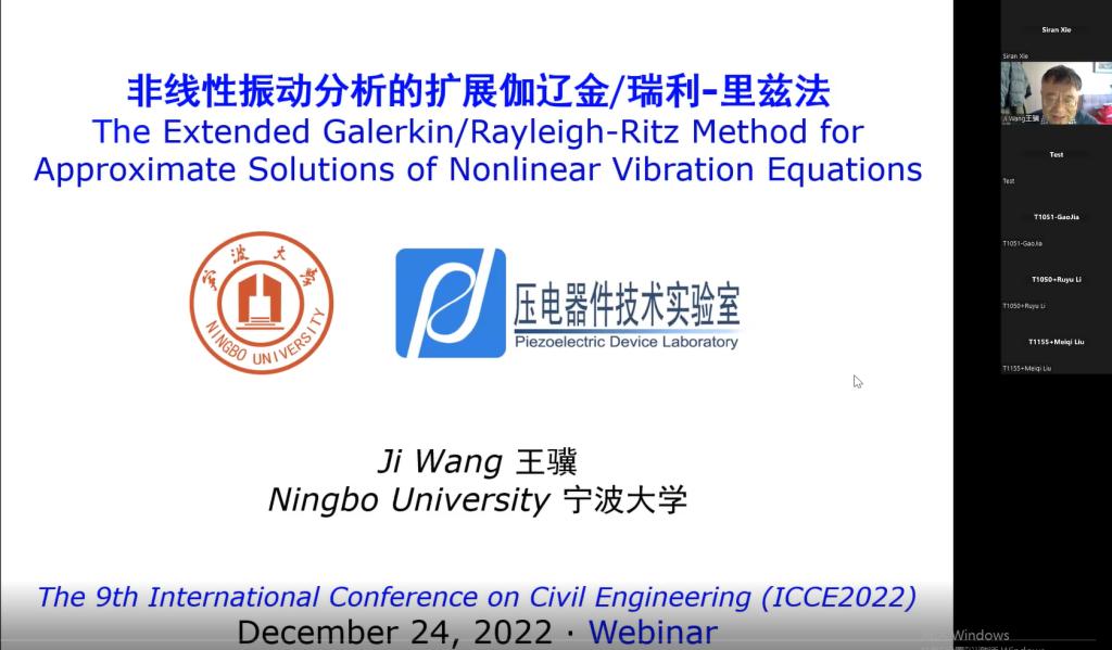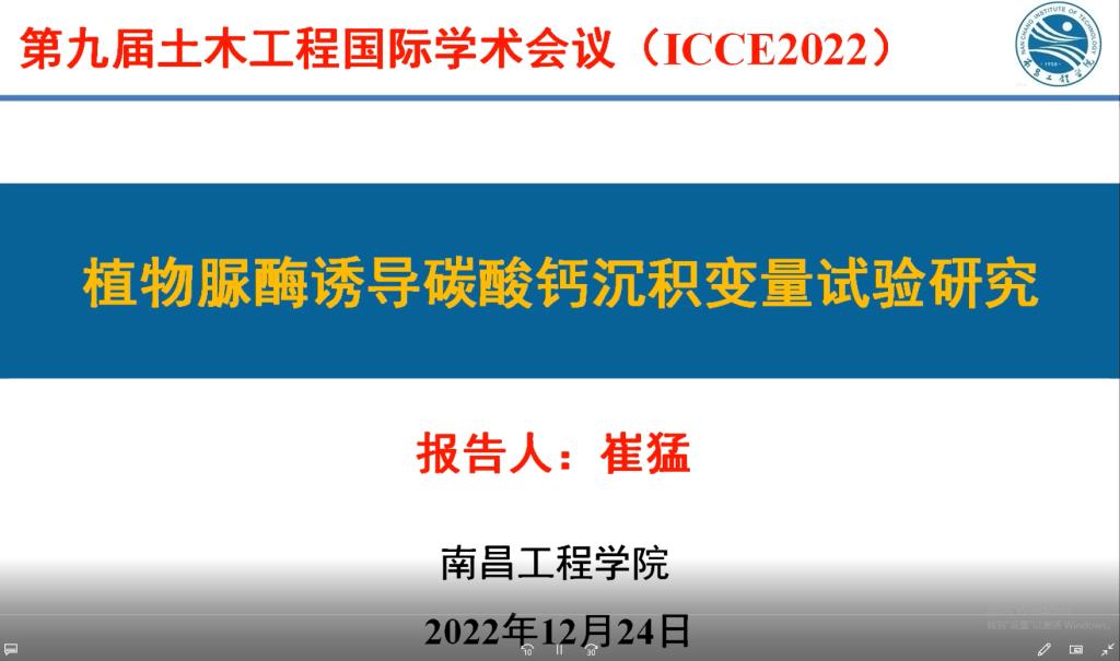 12月24日,由南昌工程学院与江西省土木建筑学会、湖北省众科地质与环境技术服务中心联合主办,南昌工程学院土木与建筑工程学院承办的“第九届土木工程国际学术会议(ICCE2022)”在线上召开。土木与建筑工程学院徐斌院长致开幕词,崔猛副教授做主讲报告。