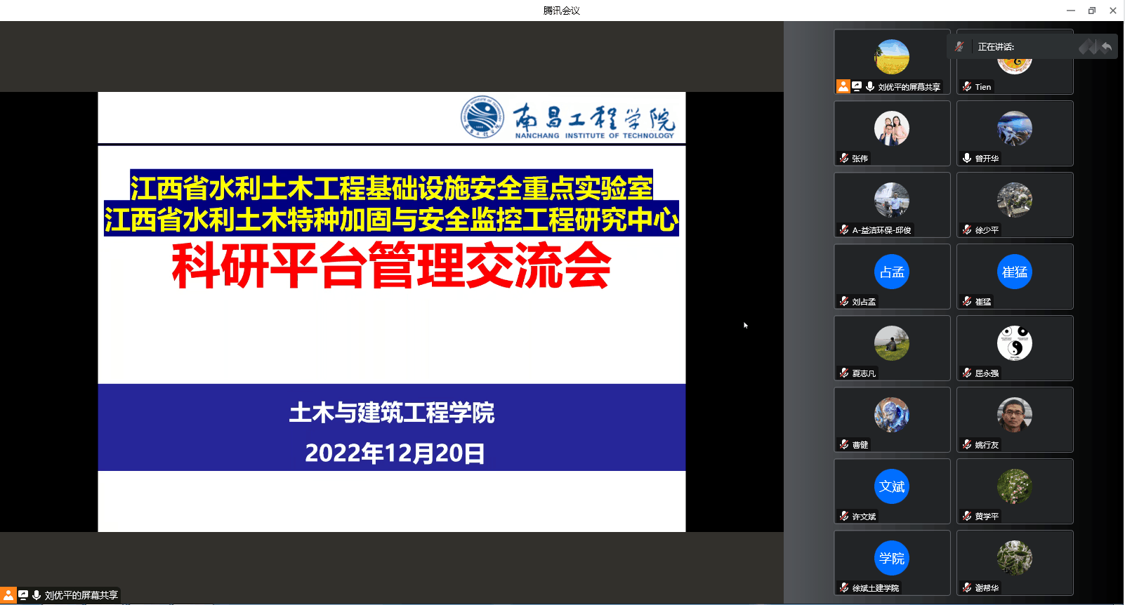 12月20日下午,土木与建筑工程学院省级科研平台管理交流会以腾讯会议方式开展。土木与建筑工程学院院长、省级平台主任、学科与研究生培养秘书以及校内外研究生导师参加会议。