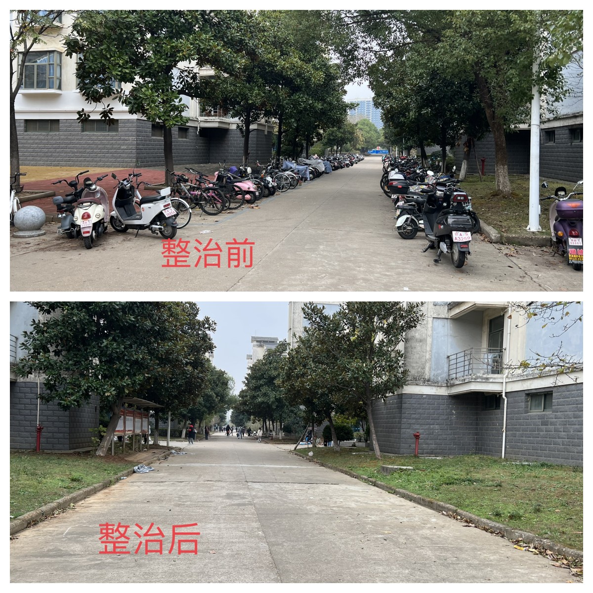 师生对此次专项整治工作表示赞扬,宿舍楼栋主干道通畅整洁,焕然一新。后续志愿者将持续轮班站岗,引导同学们按指定点停放,为创建文明校园贡献青春力量。(图/文 黄航)
