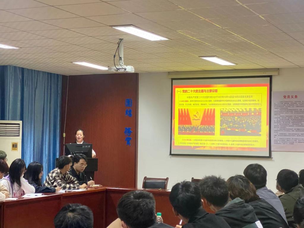 11月6日晚,土木与建筑工程学院在土建楼B207-1会议室开展党的二十大精神专题学习会。学院团委副书记万珊主持会议,学院团委学生会全体学生干部100余人到场学习。