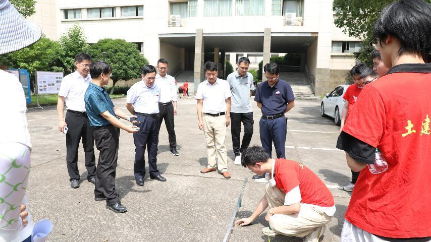 汪胜前一行观看了土木与建筑工程学院“专业实践+”劳动教育实践活动成果展示视频,与师生一起参观学生作品并为作品投票,来到校园主干道实地指导道路勘测实践活动,对实践活动成效给予肯定。他指出,劳动教育实践活动要充分发挥学院专业优势和办学特色,注重结合产业新形态、劳动新形态;教师要将课程思政与专业教育有机结合,弘扬工匠精神和劳动教育新理念,在潜移默化中引导学生养成良好的劳动品质和劳动素养。