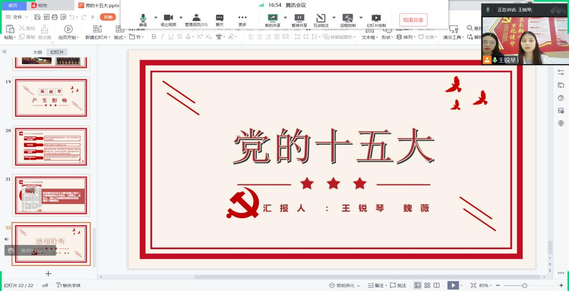 2022年是党的二十大召开之年,同时也将迎来中国共产主义青年团100岁的生日,5月4日下午,土木与建筑工程学院2019级城乡规划01班团支部开展线上主题团日活动。邀请第三学生党支部王锐琴、魏薇两位党员线上为团支部全体成员作专题微团课。