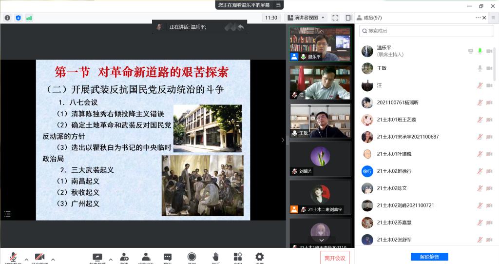 4月21日下午,校长汪胜前在线听取了温乐平老师为21土木工程班级讲授的《中国近现代史纲要》课程。