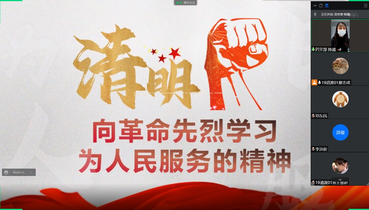 曾子曰:“慎终追远,民德归厚矣。”清明时节,祭拜祖先,缅怀先烈是中华传统文化,更是我们崇尚英雄,寄托哀思的一种方式。4月5日,土木与建筑工程学院第四学生党支部在线上开展以“向革命先烈学习为人民服务的精神”为主题的会议。