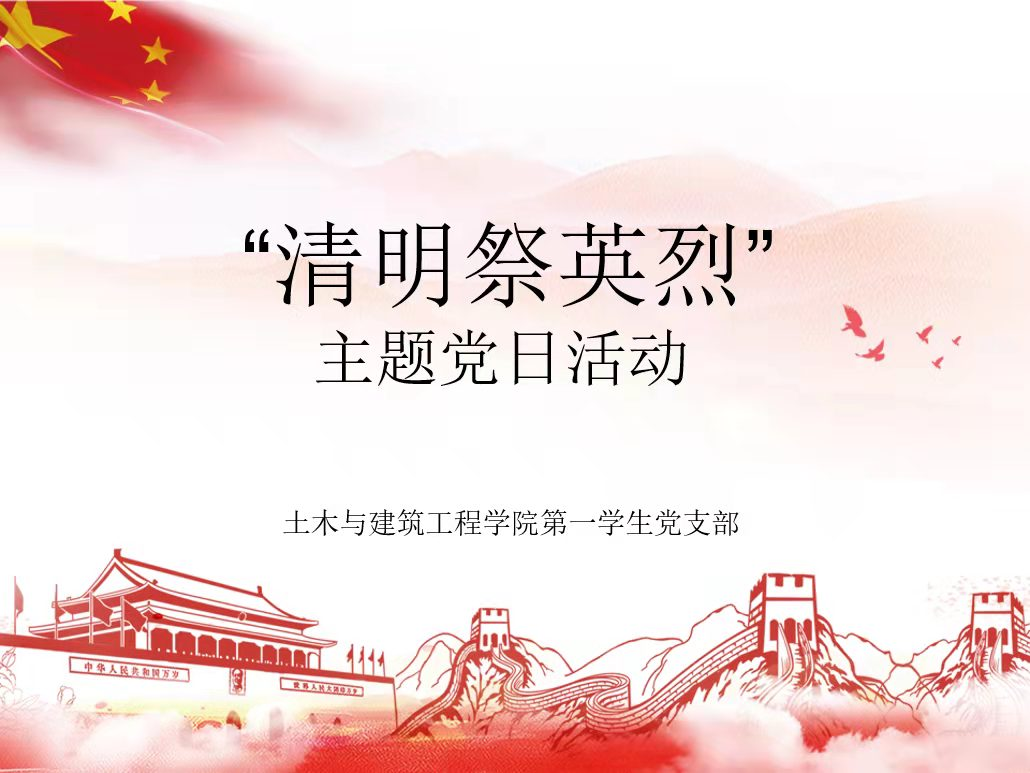 不忘先烈抛忠骨,民族复兴中华魂。4月4日,在中华民族的传统节日清明节来临之际,为了缅怀革命先烈的英雄事迹,继承革命烈士的光荣传统,土木与建筑工程学院第一学生党支部组织学生党员和积极分子开展“清明祭英烈”线上主题活动。