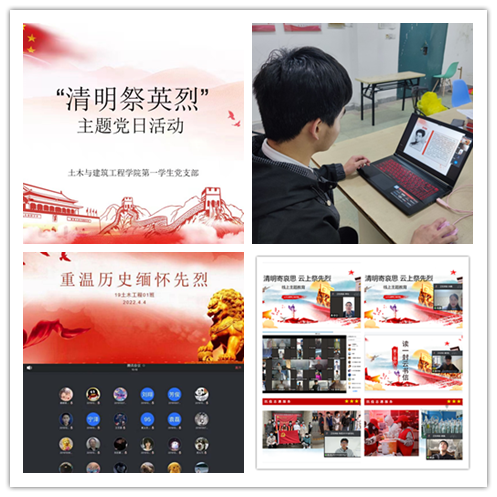 时值清明,党员干部坚守“疫”线,让党旗在疫情防控一线高高飘扬。为切实做好疫情防控工作,土木与建筑工程学院开展“清明寄哀思,云上祭先烈”线上主题教育,向革命先烈和牺牲在战“疫”一线的英雄们致敬,用自己的实际行动来践行爱国主义精神。榫卯辅导员工作室和榫卯青年服务站共同倡导文明祭扫,绷紧抗疫之弦,站好防控之岗。