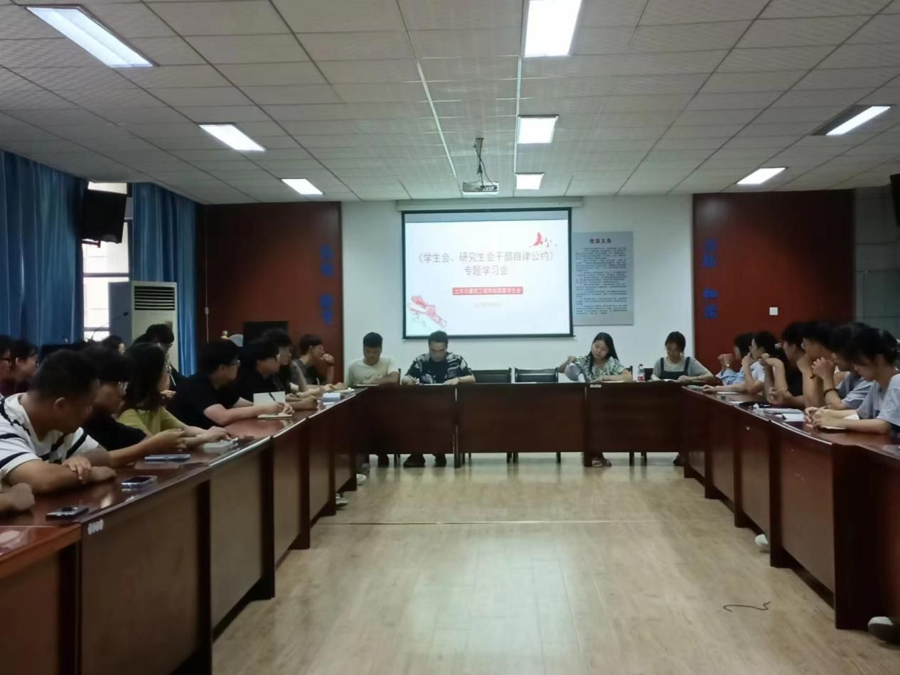 9月6日晚,土木与建筑工程学院学生会组织学生干部在土建楼B207-1会议室集中学习《学生会、研究生会干部自律公约》。此次会议由学院辅导员李慧主持,学院全体学生干部参加此次学习。