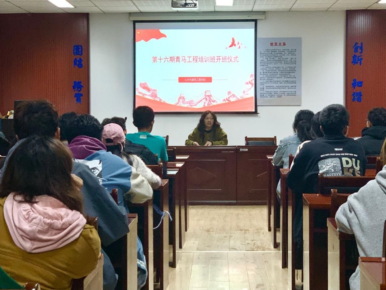 11月9日下午,土木与建筑工程学院第十六期“青马工程”大骨干培训班开班仪式在土建楼B207-1会议室隆重举行。第十六期大骨班学员74人参会,学院分团委副书记万珊主持开班仪式。