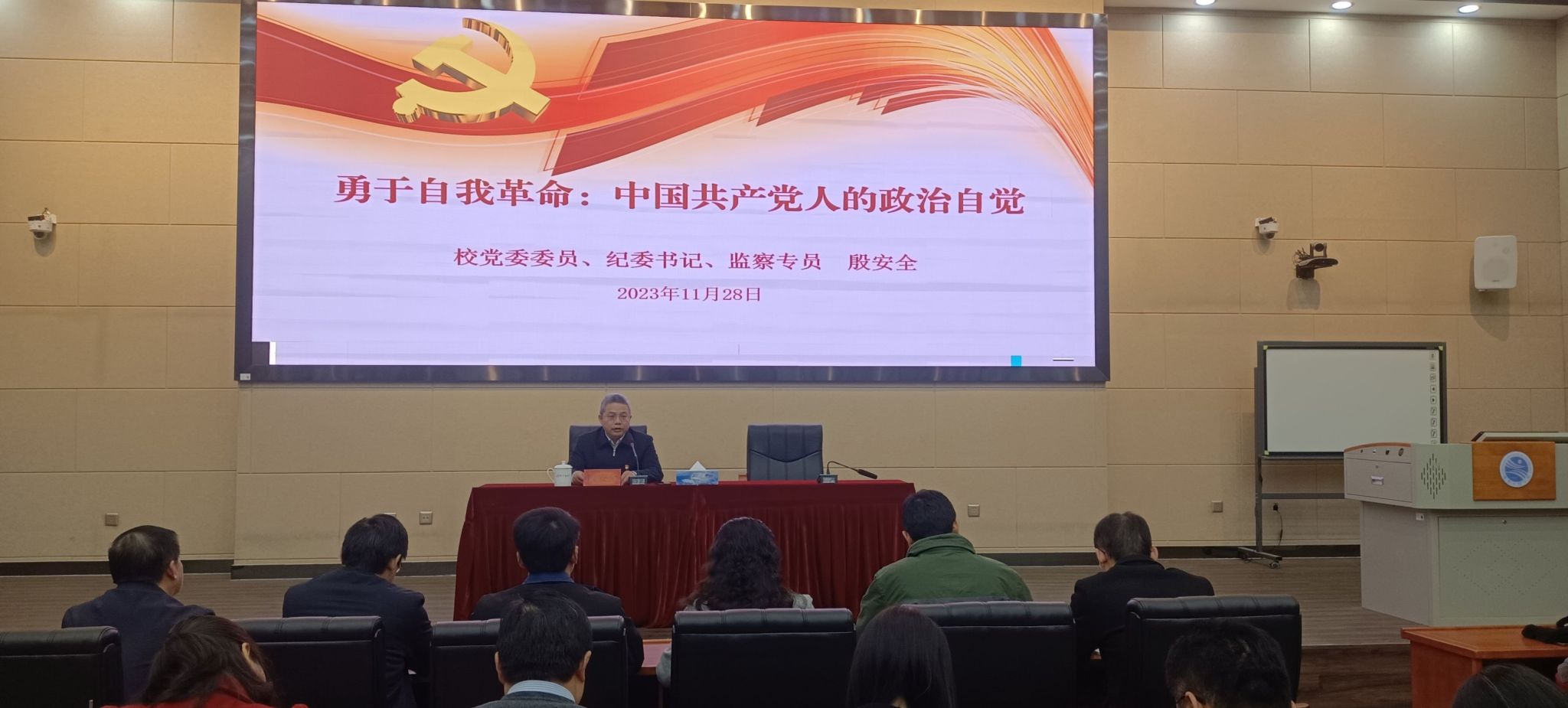 11月28日,校党委委员、纪委书记、监察专员殷安全深入土木与建筑工程学院讲授专题党课,土木与建筑工程学院师生党员代表150余人参加学习,学院党委书记汪小布主持。