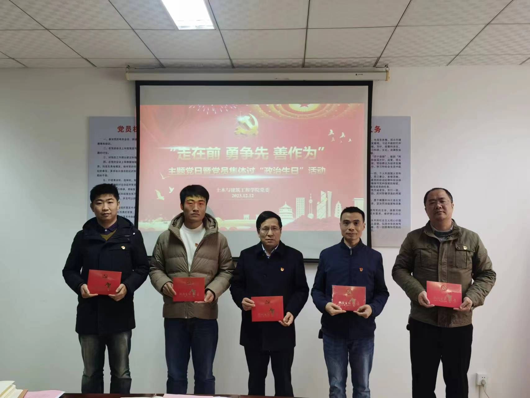 活动在重温入党誓词的铮铮誓言中开始,土木与建筑工程学院第一教工党支部书记代表党支部向12月过“政治生日”的5名党员送上精心准备的“政治生日贺卡”,并就党支部学习、工作情况和取得的成绩进行汇报。过“政治生日”的党员同志回忆自己入党时的场景和初心,结合自身工作生活情况畅谈“政治生日”感言。
