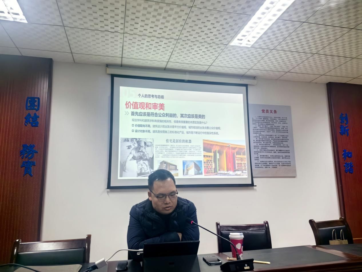 为加强城乡规划专业教师队伍建设,提升学生专业认同感,12月27日晚,土木与建筑工程学院在土建楼B207-1会议室开展“城市设计的学习、实践与思考”学术讲座暨主题党团日活动。活动邀请雅克设计公司技术总监、2009级城乡规划校友吴友阳主讲,学院第二教工党支部委员、城乡规划专业负责人丁芸主持,学院第二教工党支部、第三学生党支部党员代表和城乡规划团支部团员代表共计80余人到场参会。
