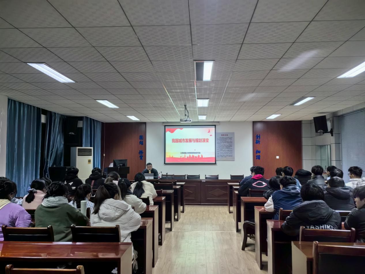 2024年1月2日晚,土木与建筑工程学院“党建引领聚合力 学术交流促发展”主题党团日活动在土建楼B207-1会议室举行。江西省国土空间调查规划研究院所长占晓林作题为《我国城市发展与生态文明背景下的规划演变》专题报告,土木与建筑工程学院第二教工党支部委员、城乡规划专业负责人丁芸主持,第二教工党支部、第三学生党支部、城乡规划团支部等师生代表到场参会。