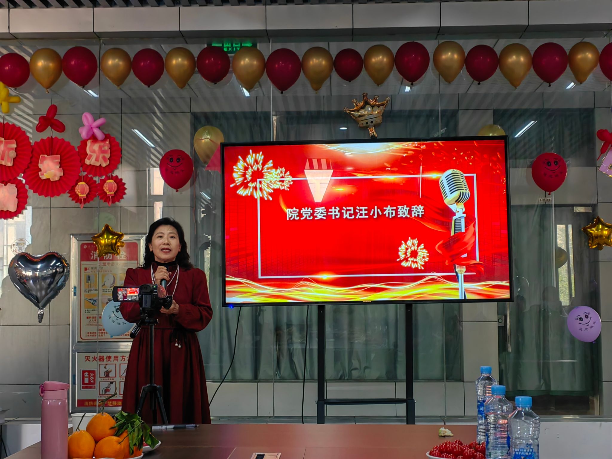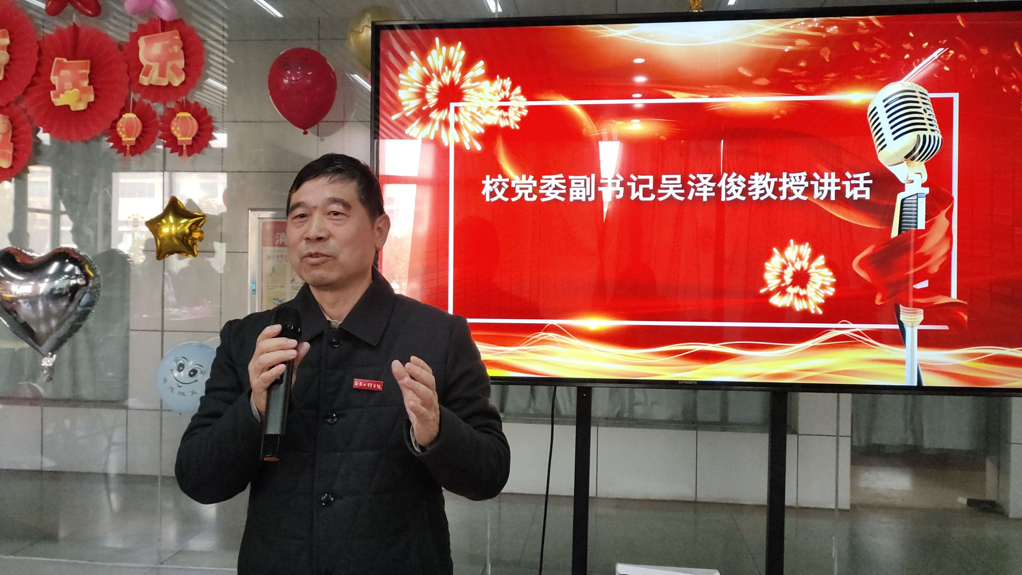 首先,校党委副书记吴泽俊为大家送上祝福,他对一年来在工作岗位上潜心育人的教职工们表达衷心感谢,期待新的一年,全院教职工共同努力、携手并进,像榫卯一样,团结一心,形成一个新的有结构化的力量,在学院党委的领导下,调动所有教职工积极性,乘着2024年学校发展的东风,推进学院各项事业越办越好。