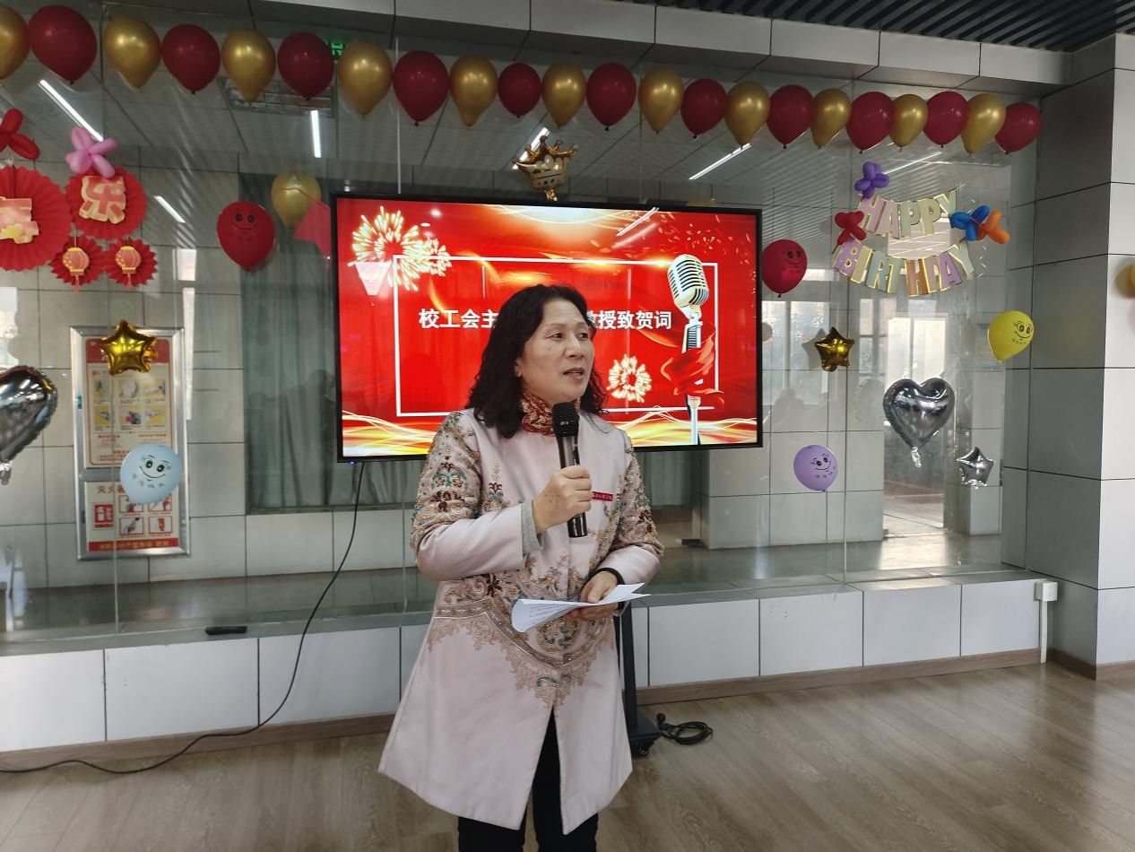 伴随着《祝你生日快乐》响起,学院为21位一季度生日的老师们举行集体生日会,校工会主席胡盛华为大家送上祝福并发放蛋糕卡。