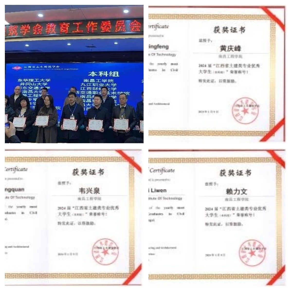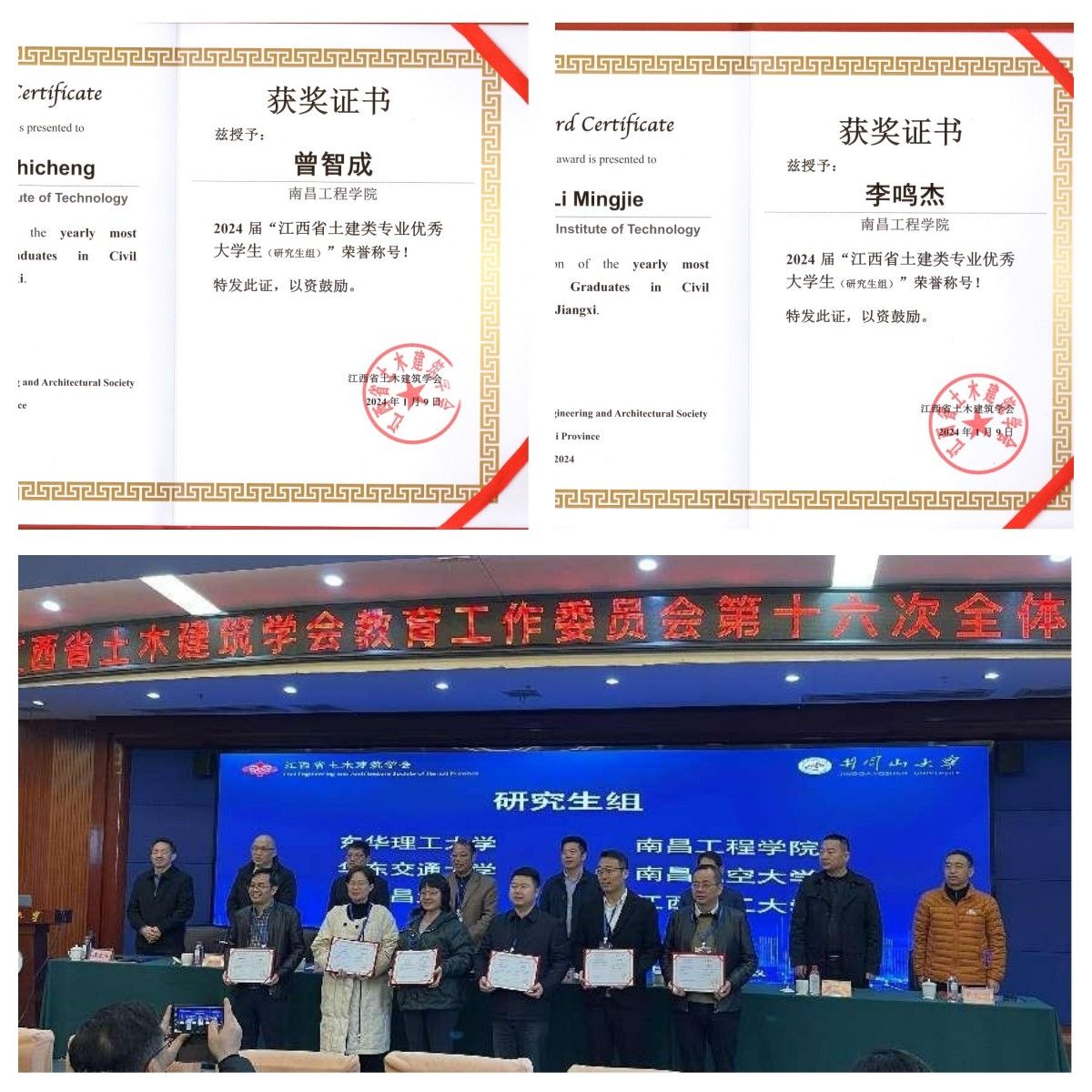 会议举行了2024届江西省土建类优秀研究生颁奖仪式,我院曾智成、李鸣杰获2024届江西省土建类优秀研究生,崔猛副主任代表学院领取省优秀研究生证书。(文/图 姚行友)