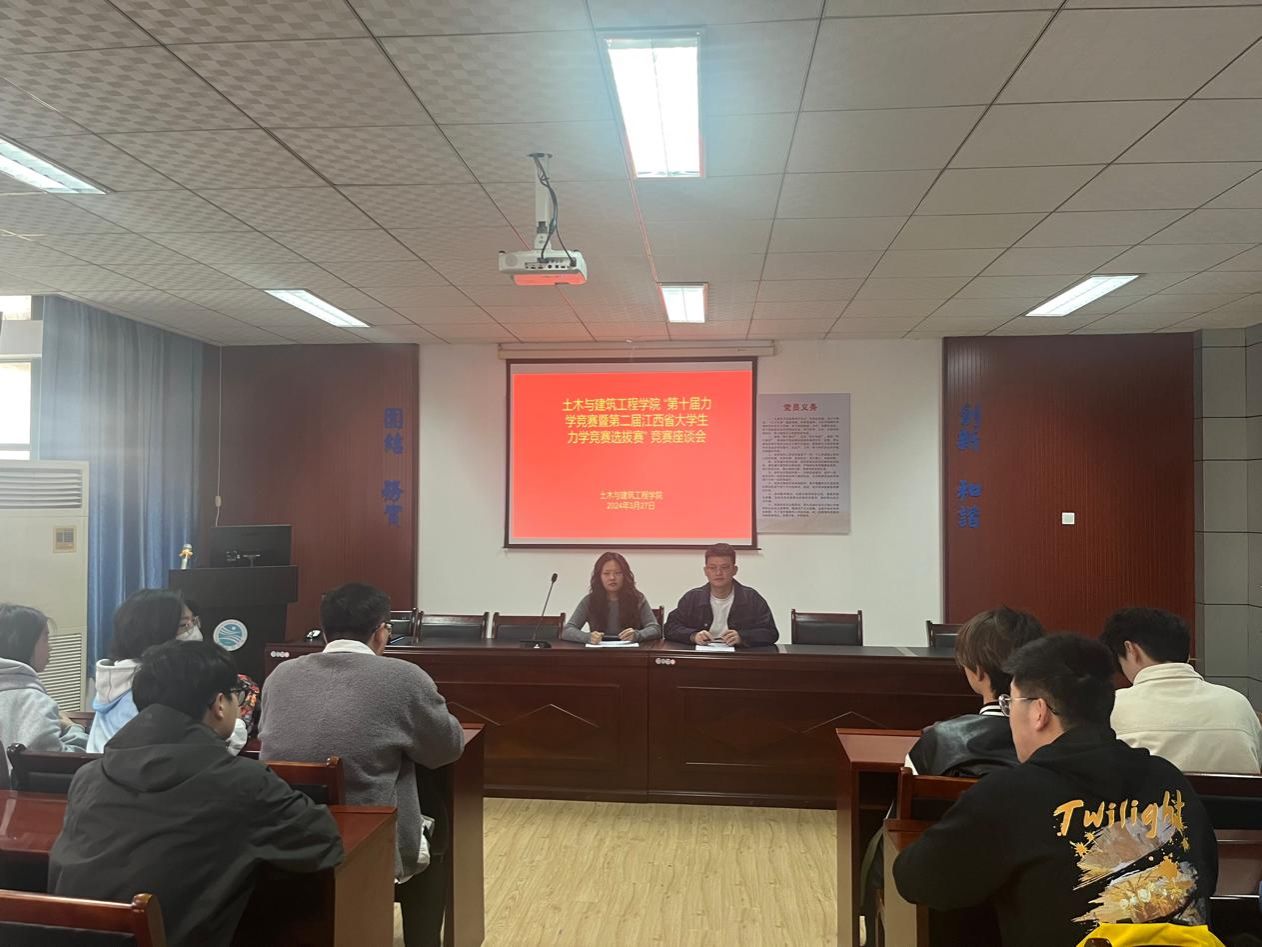 为活跃全校学术氛围,培养力学创新人才,3月27日,土木与建筑工程学院团委在土建楼B207举行了我校第十届力学竞赛暨第二届江西省大学生力学竞赛选拔赛答疑会。本次座谈会由辅导员黄航主持,学院分团委负责人万珊、各班级学委、力学实践与工程创新社团成员等50余人参加了会议。