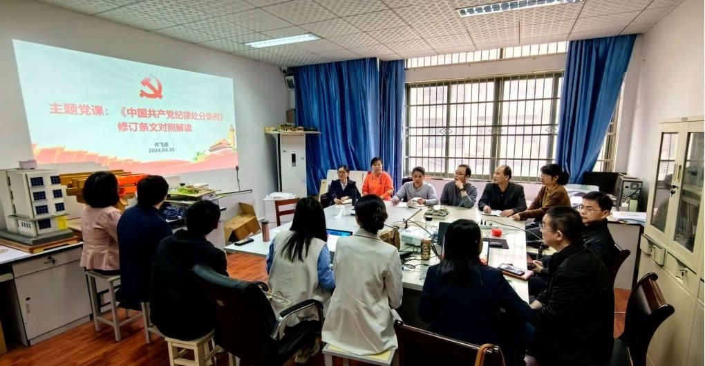 4月30日,城市建设教研室党支部在教育技术楼B105党员活动室召开党纪学习教育专题党课,党支部全体党员参加学习。