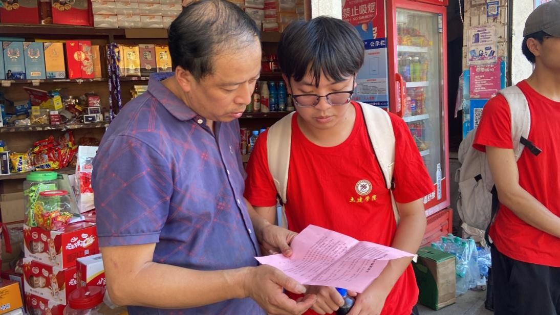 实践团成员来到集镇街头,通过发放传单、调查问卷等形式,为群众剖析典型案例,揭露诈骗分子的常用手段和作案方式,告诫群众面对诱惑要时刻保持警觉与戒备,坚决不向陌生人提供任何身份与财务的信息,绝不点击可疑链接,不贪图小利,提高识诈能力。