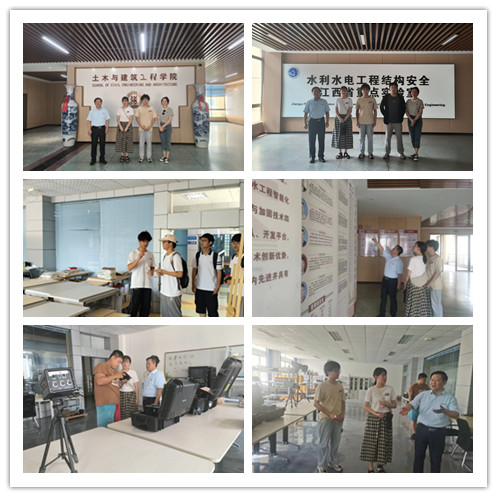 2024年暑期高考生及家长先后参观了大学生活动中心、学生社区(寝室)、图书馆、水文化广场,随后,来到土建楼进一步参观学院的教学环境。江西省水利土木工程基础设施安全重点实验室专职副主任曾开华向参观者介绍了学院的基本情况,带领大家参观了实验室,并针对学生录取专业作实验室设备详细讲解。学院学生党员志愿者为即将到来的学弟学妹进行答疑解惑。