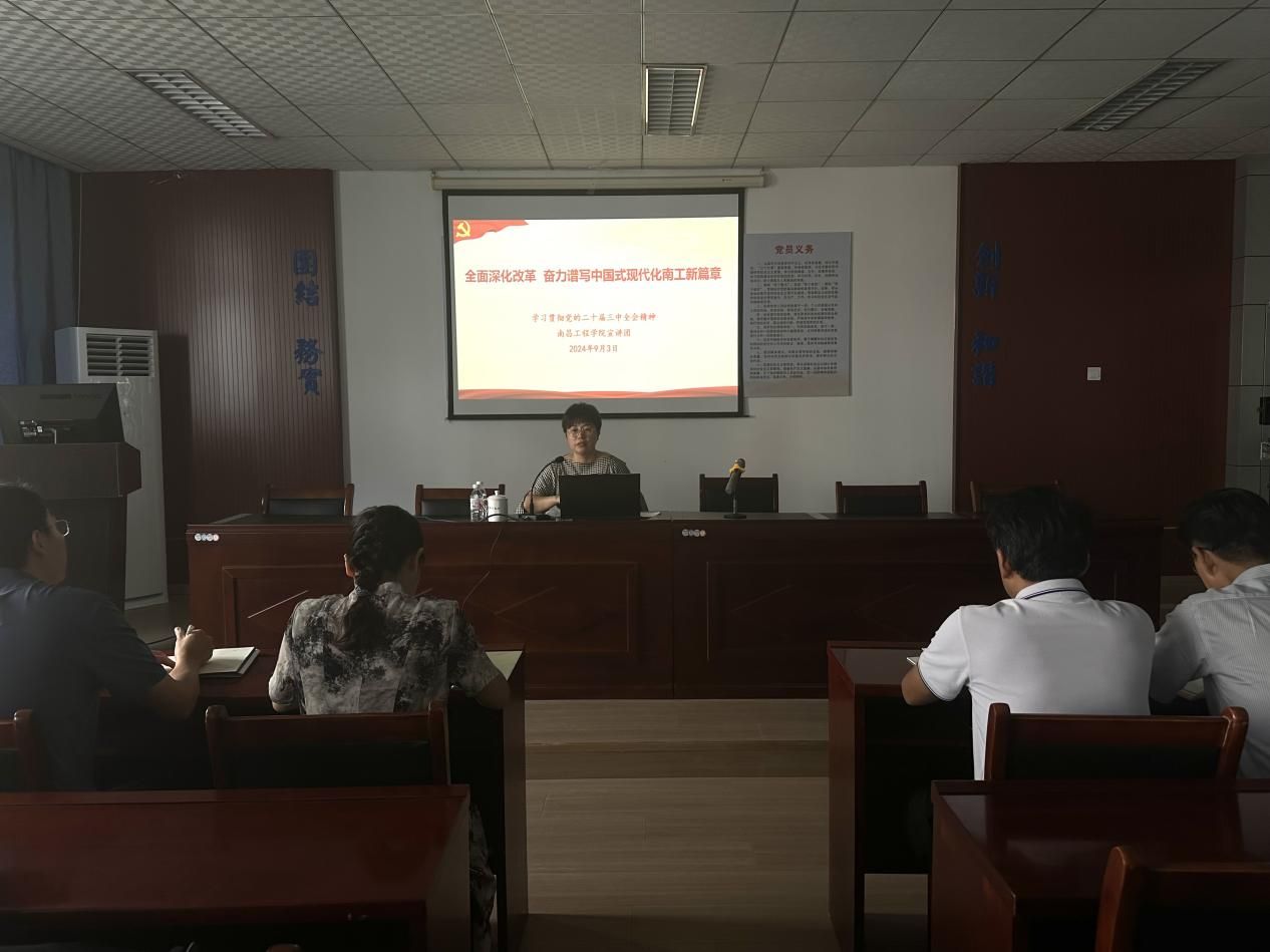 为深入学习宣传贯彻党的二十届三中全会精神,奋力谱写中国式现代化南工新篇章,9月3日下午,校宣讲团成员、人事处(党委教师工作部)负责人、机械工程学院党委书记夏志红在土木与建筑工程学院宣讲,土木与建筑工程学院全体教职工参加。