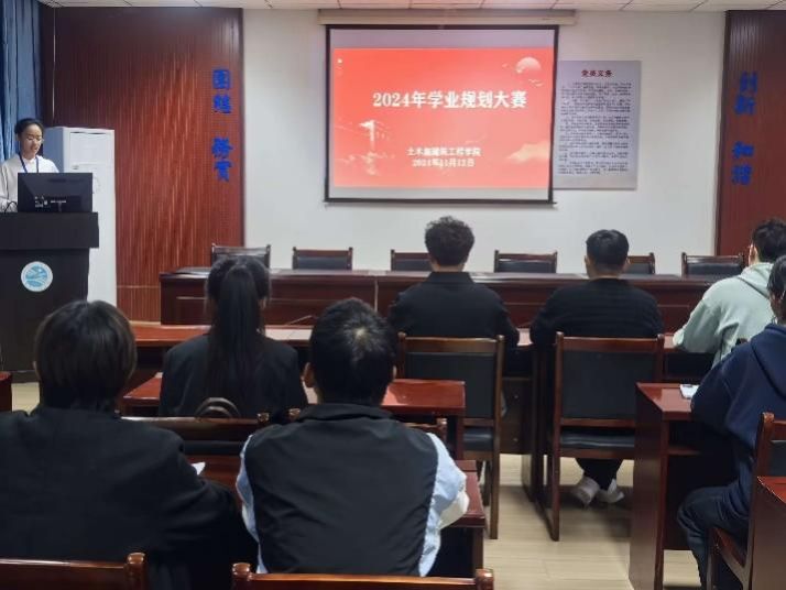 为引导学生树立正确的人生观,成才观和求实创新、励志图强的意识,科学规划自己的大学生涯和未来的职业生涯,土木与建筑工程学院2024年大学生学业规划大赛于11月12日晚在土建楼B207-1会议室举行,辅导员黄航以及学生干部代表担任本次大赛评委。