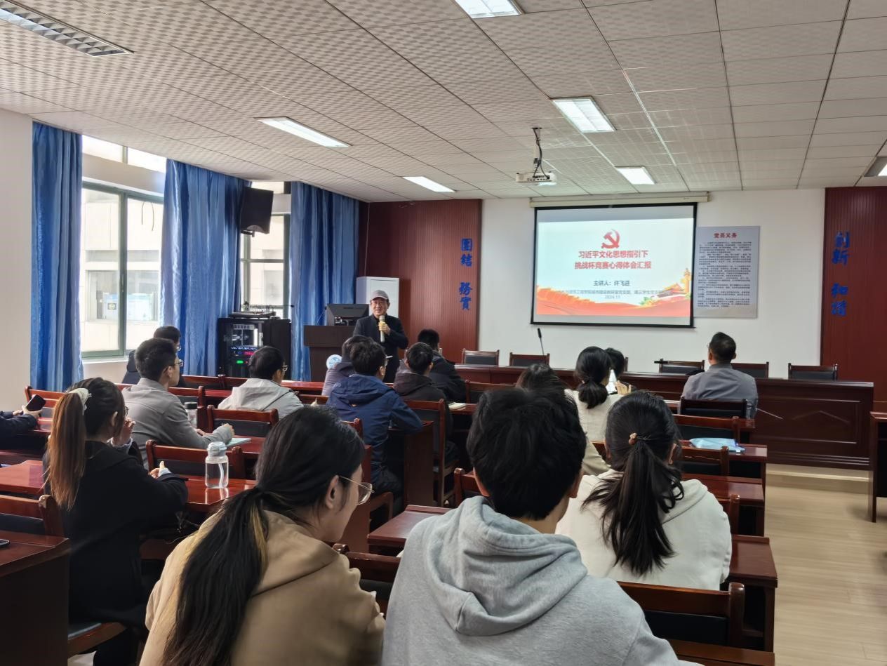 许飞进教授凭借其深厚的专业知识和丰富的参赛经验,为大家带来了一场题为《习近平文化思想引领下挑战杯竞赛的实践与思考》的精彩党课讲座。他围绕习近平文化思想的形成与文化遗产保护的重要性、第十八届“挑战杯”大学生课外学术科技作品竞赛的概述以及自己参与历届挑战杯竞赛的心得体会等三大方面,进行了深入浅出的分享。许教授强调,要以竞赛为激励,鼓励跨学科组建团队,将竞赛与学生的学业发展、就业规划相结合,同时,通过竞赛促进学习,实现教学相长,积极构建以学生为中心、教师为引导的教育培养模式,打造专业发展的特色亮点。此外,许教授还就参赛项目选题、经费来源以及参赛过程中的注意事项等关键问题,为与会教师提供了详尽的指导和建议。