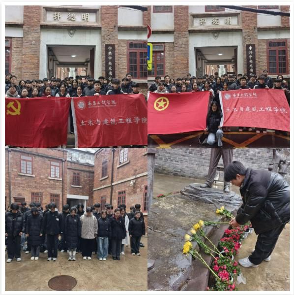 3 月 29 日,清明节前夕,土木与建筑工程学院组织学生党员、团员前往中共中央东南分局旧址开展以“榫卯传薪火 清明寄长风”主题党团日活动。通过实地祭扫与参观学习,引导青年学子传承红色基因,厚植家国情怀。