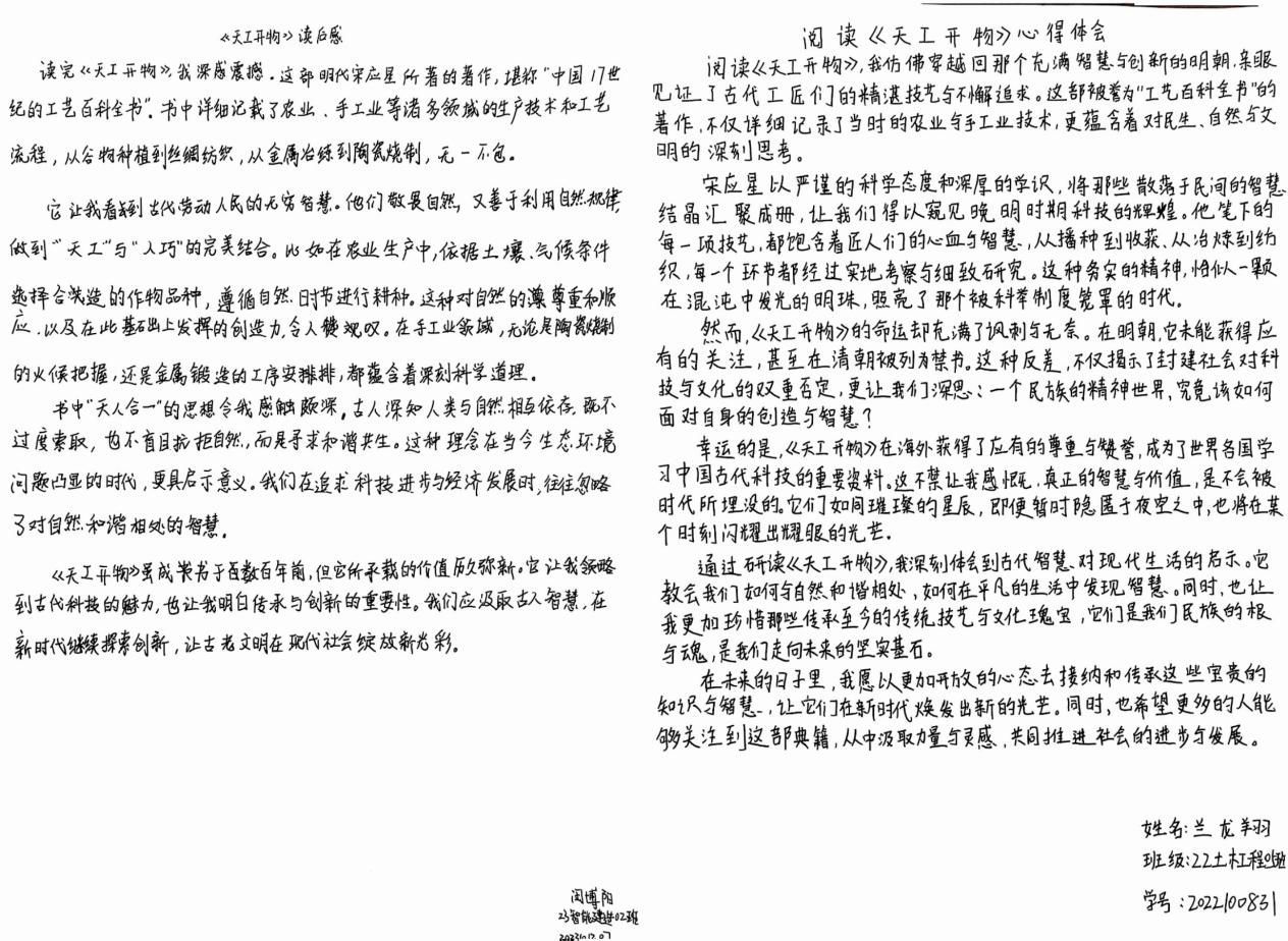 《天工开物》是明代科学家宋应星于1637年(明崇祯十年)初刊的一部综合性科学技术著作,其中涉及的建筑、砖瓦、陶瓷等技术内容与土木建筑工程专业密切相关。在读书分享会上,师生们深入探讨了书中关于建筑技术的描述,如砖瓦的制作工艺、陶瓷的烧制技术等,这些内容不仅展示了中国古代的建筑智慧,也为现代土木工程提供了宝贵的历史借鉴。